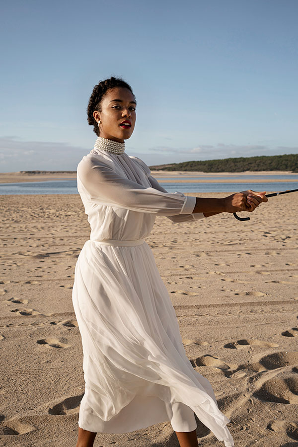This styled shoot, inspired by the movie “Daughters of the Dust” by Julie Dash, was featured on the Wedding Chicks blog. We were inspired by the movie’s sensuous cinematography, its dreamy images of women in nature and it’s lush, yet natural aesthetics. The outfits were a modern, relaxed take on the mostly white, victorian inspired gowns from the movie.